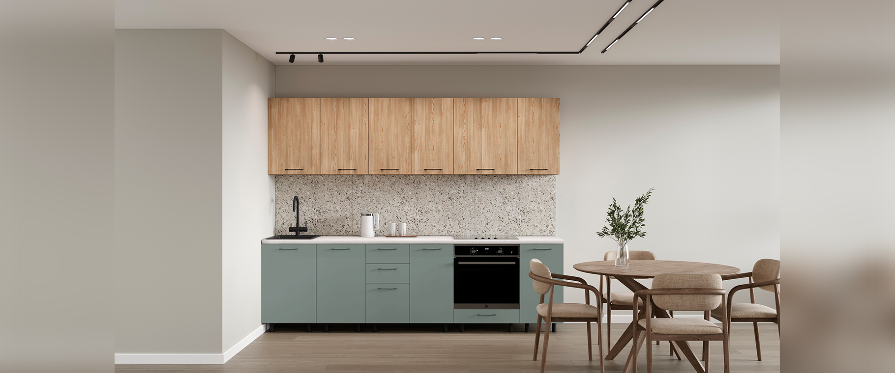 Данная базовая кухня — оптимальное решение для тех, кто предпочитает современный стиль и функциональность без лишних затрат.