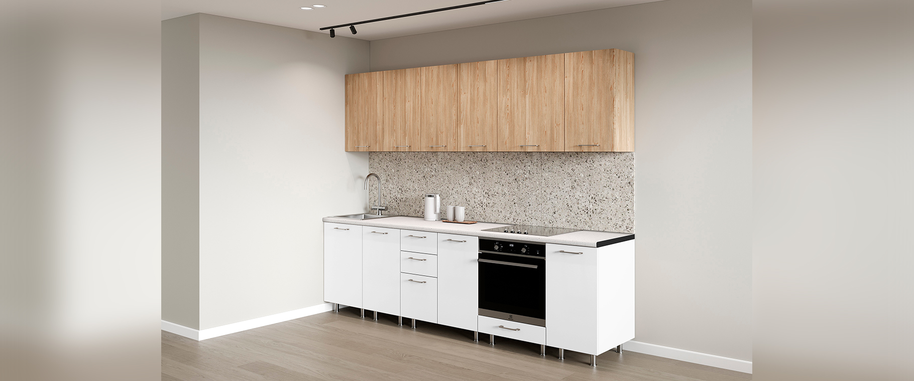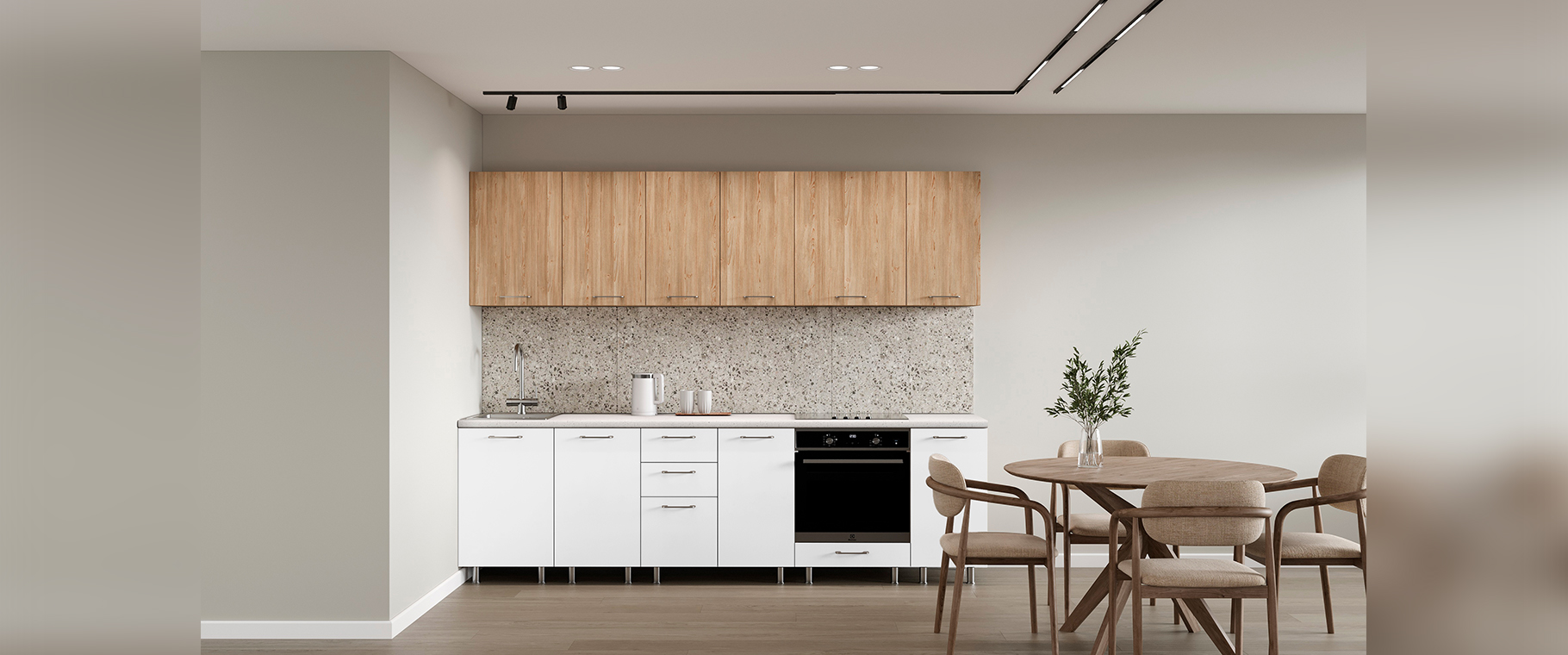 Данная базовая кухня — оптимальное решение для тех, кто предпочитает современный стиль и функциональность без лишних затрат.