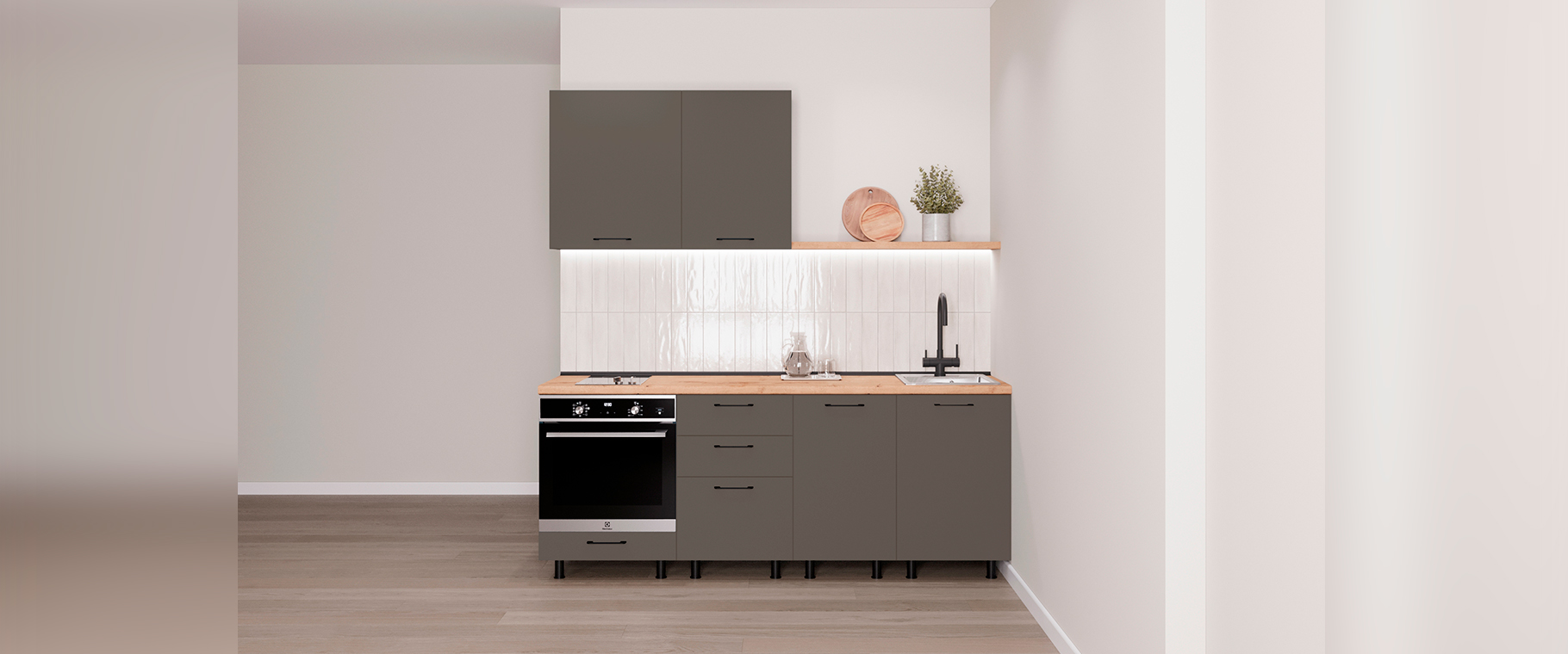 Данная базовая кухня — оптимальное решение для тех, кто предпочитает современный стиль и функциональность без лишних затрат.