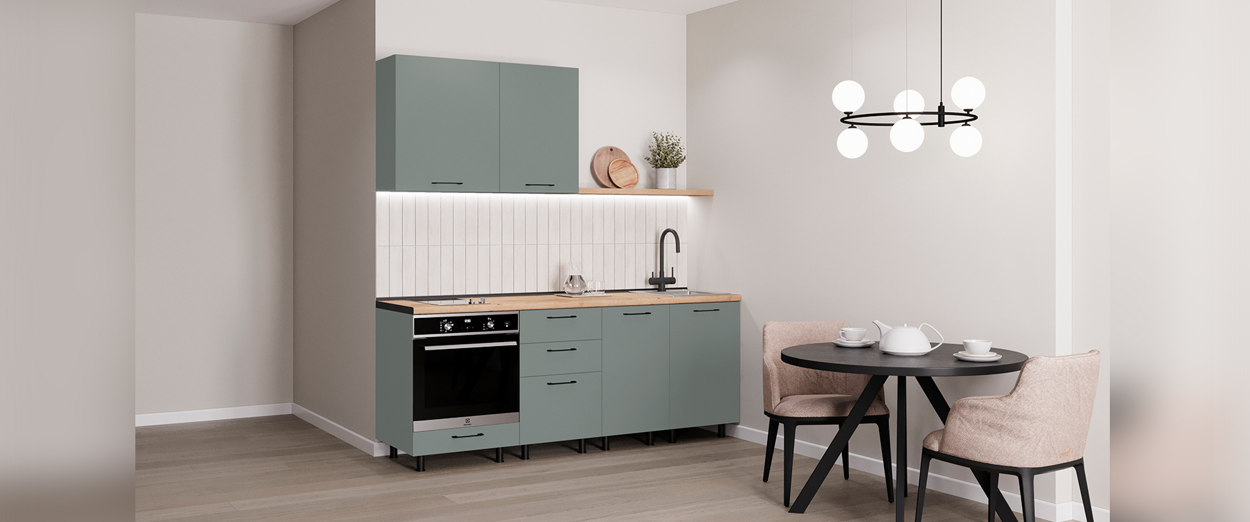 Кухня прекрасно подходит для небольших квартир или как основа для будущих обновлений. Она сочетает в себе надежность, элегантность и доступную цену.