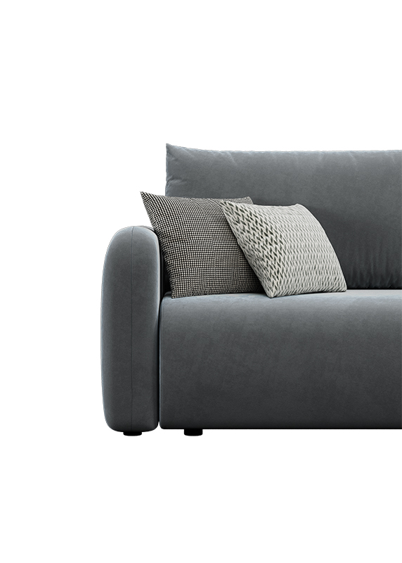 Представленный диван характеризуется базовой, современной формой, которая сочетает в себе обтекаемость, отсутствие лишнего, но при этом высокую пластичность и легкость конструкции. Идеален для кухонь и гостиных, так как гармонично сочетается с формами трендовых стульев. Демонстрирует отличную совместимость с материалами, такими как букле.