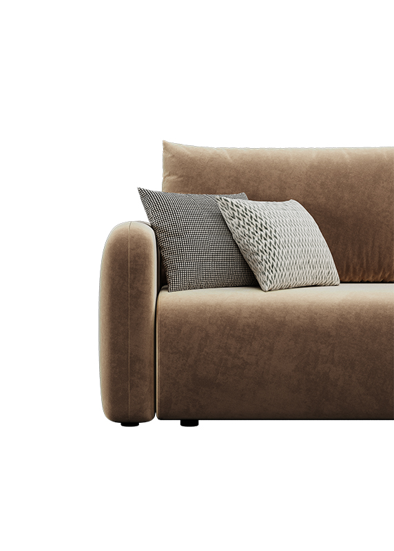 Представленный диван характеризуется базовой, современной формой, которая сочетает в себе обтекаемость, отсутствие лишнего, но при этом высокую пластичность и легкость конструкции. Идеален для кухонь и гостиных, так как гармонично сочетается с формами трендовых стульев. Демонстрирует отличную совместимость с материалами, такими как букле.