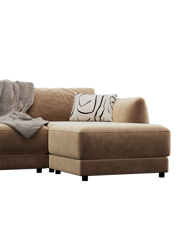 Рей Прямой+приставной пуфик 800*650 мм, может быть как отдельностоящий, так и на липучках. Структурированная форма с акцентами - эффектные "защипы" с фиксацией - позволяют образу дивана говорить о самодостаточности и возможности сделать интерьер вокруг него. Все ради того, чтобы возникло желание утонуть в подушках - погрузиться в мир комфорта и уюта, где можно забыть о реальности, но при этом сохранить структурированность и возможность применения в самых разных по стилю интерьерах.