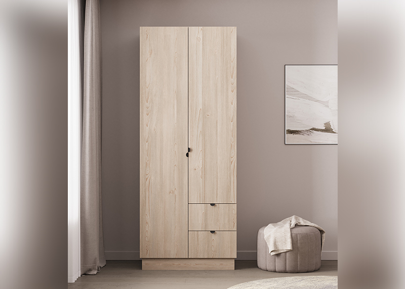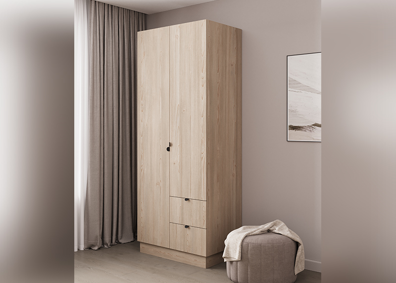 Компактный шкаф с двумя распашными дверцами — отличное решение для спальни, прихожей или детской. Простая, но продуманная конструкция обеспечивает удобный доступ к вещам. Благодаря нейтральному дизайну он гармонично дополнит любую обстановку, не требуя перестройки интерьера.
