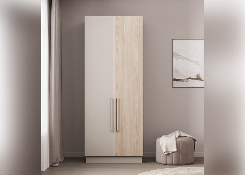 Компактный шкаф с двумя распашными дверцами — отличное решение для спальни, прихожей или детской. Простая, но продуманная конструкция обеспечивает удобный доступ к вещам. Благодаря нейтральному дизайну он гармонично дополнит любую обстановку, не требуя перестройки интерьера.