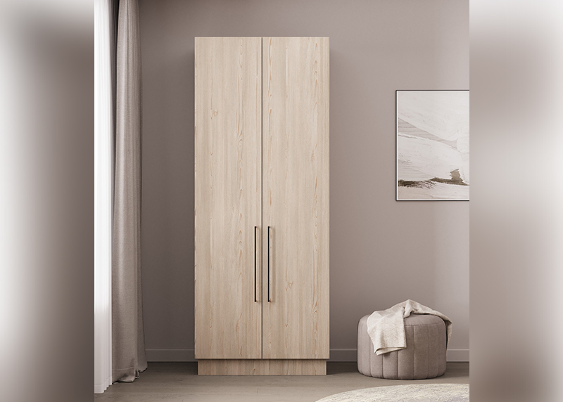 Компактный шкаф с двумя распашными дверцами — отличное решение для спальни, прихожей или детской. Простая, но продуманная конструкция обеспечивает удобный доступ к вещам. Благодаря нейтральному дизайну он гармонично дополнит любую обстановку, не требуя перестройки интерьера.