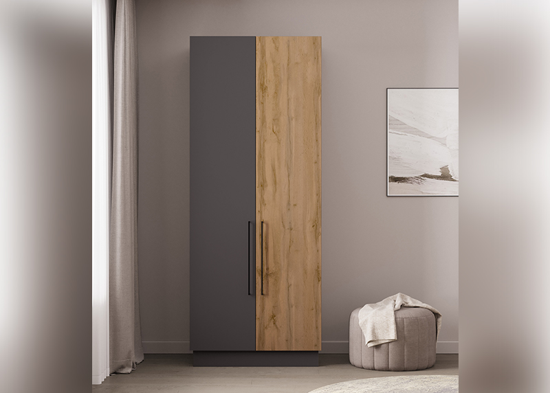 Компактный шкаф с двумя распашными дверцами — отличное решение для спальни, прихожей или детской. Простая, но продуманная конструкция обеспечивает удобный доступ к вещам. Благодаря нейтральному дизайну он гармонично дополнит любую обстановку, не требуя перестройки интерьера.
