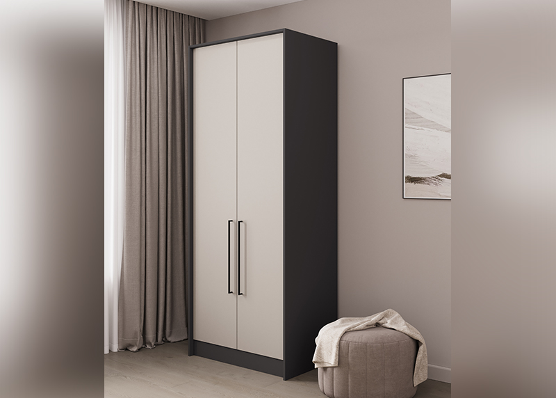 Компактный шкаф с двумя распашными дверцами — отличное решение для спальни, прихожей или детской. Простая, но продуманная конструкция обеспечивает удобный доступ к вещам. Благодаря нейтральному дизайну он гармонично дополнит любую обстановку, не требуя перестройки интерьера.