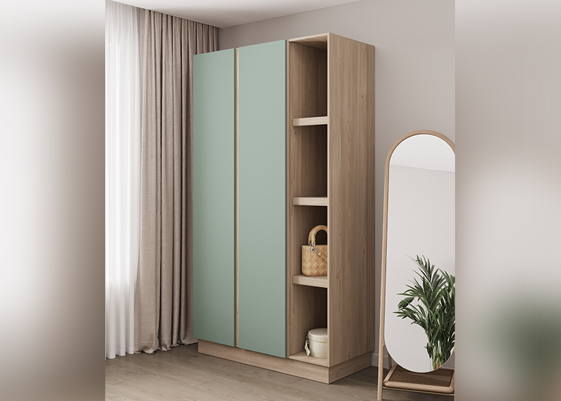 Компактный шкаф с двумя распашными дверцами — отличное решение для спальни, прихожей или детской. Простая, но продуманная конструкция обеспечивает удобный доступ к вещам. Благодаря нейтральному дизайну он гармонично дополнит любую обстановку, не требуя перестройки интерьера.