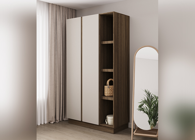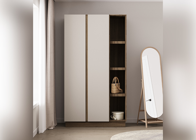 Компактный шкаф с двумя распашными дверцами — отличное решение для спальни, прихожей или детской. Простая, но продуманная конструкция обеспечивает удобный доступ к вещам. Благодаря нейтральному дизайну он гармонично дополнит любую обстановку, не требуя перестройки интерьера.