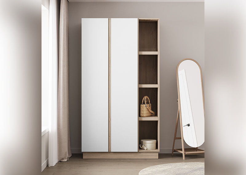 Компактный шкаф с двумя распашными дверцами — отличное решение для спальни, прихожей или детской. Простая, но продуманная конструкция обеспечивает удобный доступ к вещам. Благодаря нейтральному дизайну он гармонично дополнит любую обстановку, не требуя перестройки интерьера.