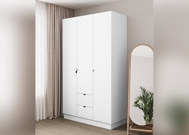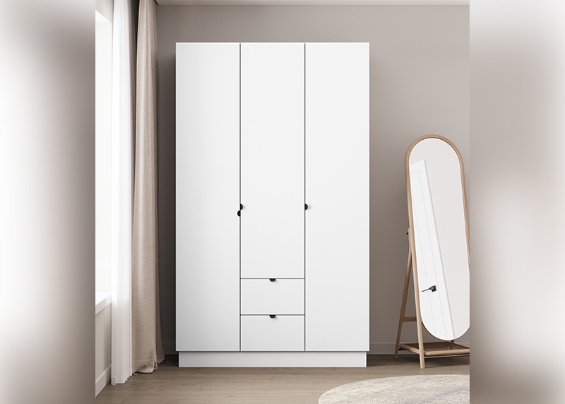 Компактный шкаф с тремя распашными дверцами — отличное решение для спальни, прихожей или детской. Простая, но продуманная конструкция обеспечивает удобный доступ к вещам. Благодаря нейтральному дизайну он гармонично дополнит любую обстановку, не требуя перестройки интерьера.