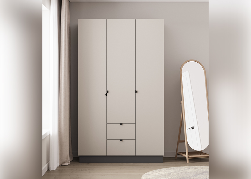 Компактный шкаф с тремя распашными дверцами — отличное решение для спальни, прихожей или детской. Простая, но продуманная конструкция обеспечивает удобный доступ к вещам. Благодаря нейтральному дизайну он гармонично дополнит любую обстановку, не требуя перестройки интерьера.