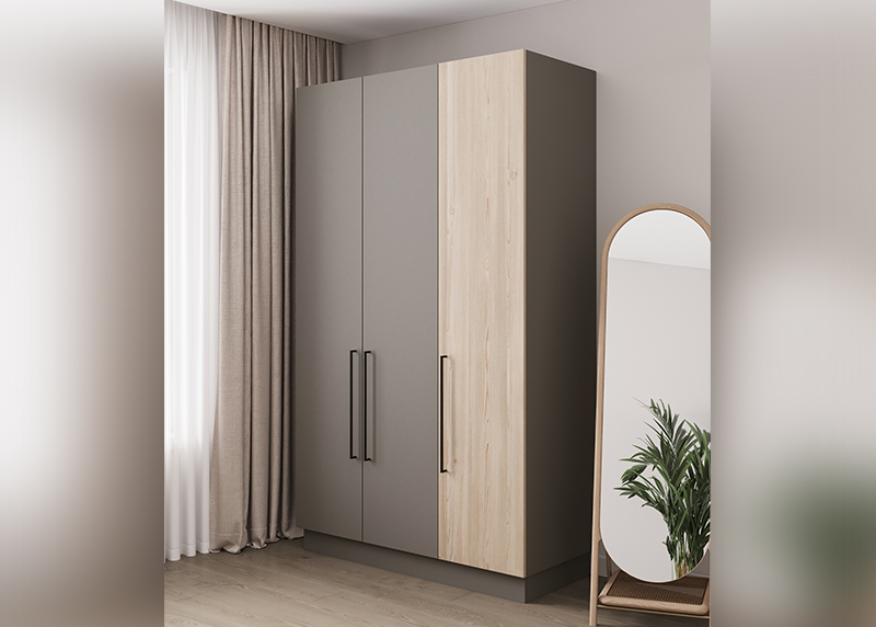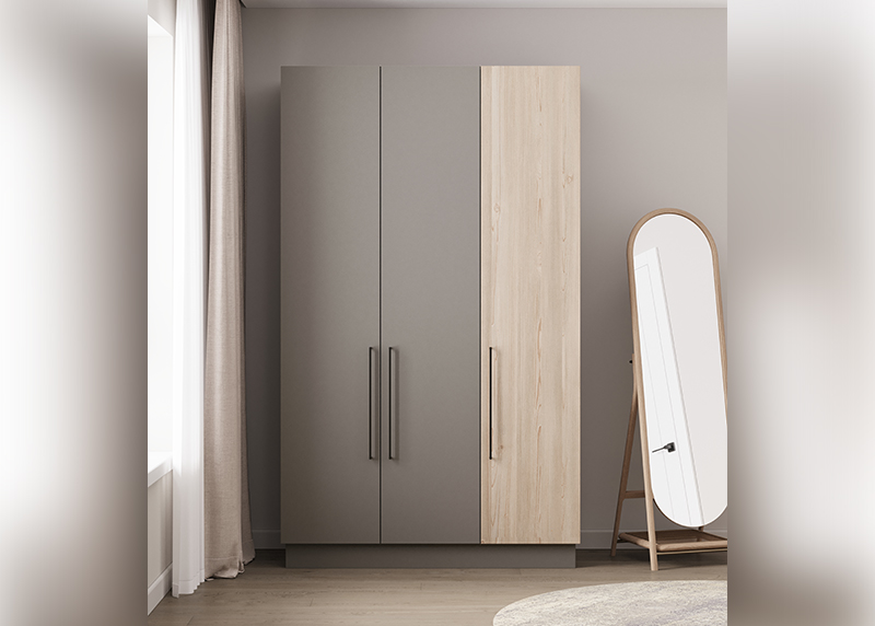 Компактный шкаф с тремя распашными дверцами — отличное решение для спальни, прихожей или детской. Простая, но продуманная конструкция обеспечивает удобный доступ к вещам. Благодаря нейтральному дизайну он гармонично дополнит любую обстановку, не требуя перестройки интерьера.