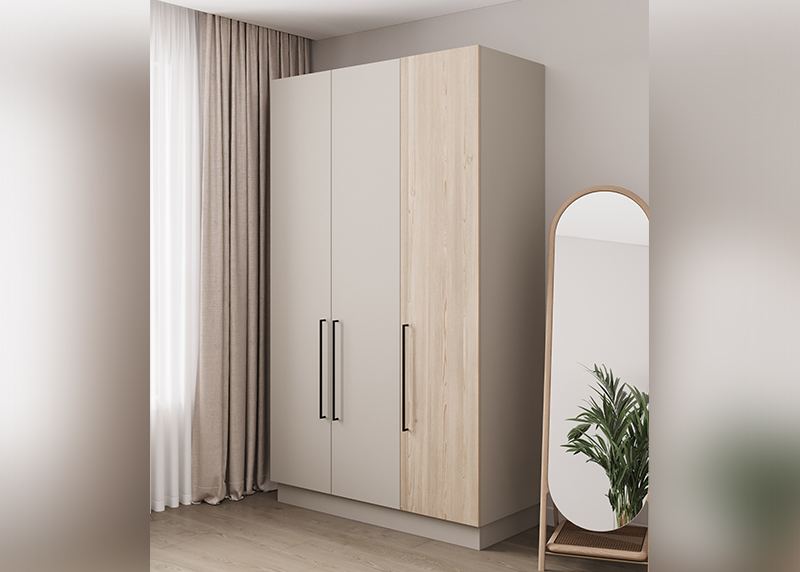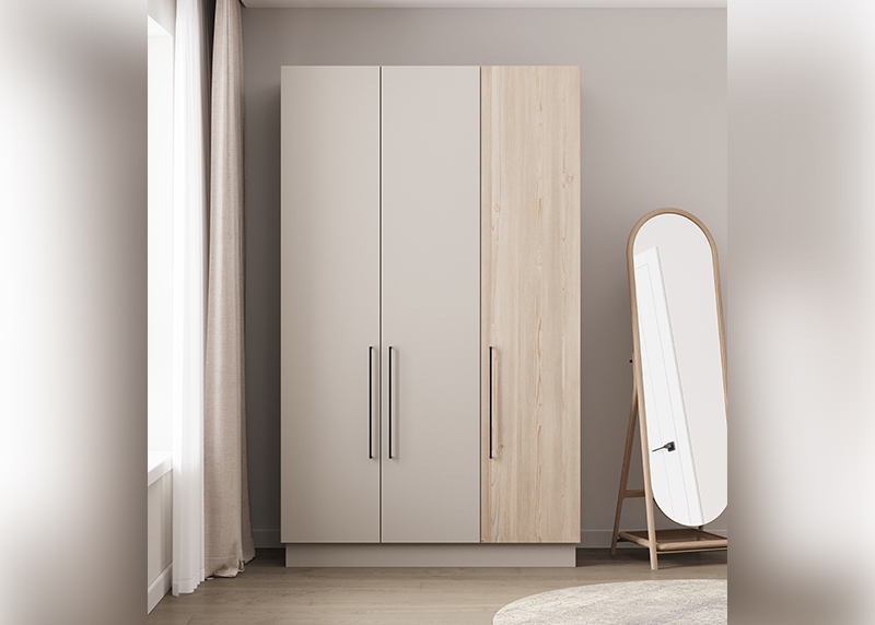 Компактный шкаф с тремя распашными дверцами — отличное решение для спальни, прихожей или детской. Простая, но продуманная конструкция обеспечивает удобный доступ к вещам. Благодаря нейтральному дизайну он гармонично дополнит любую обстановку, не требуя перестройки интерьера.