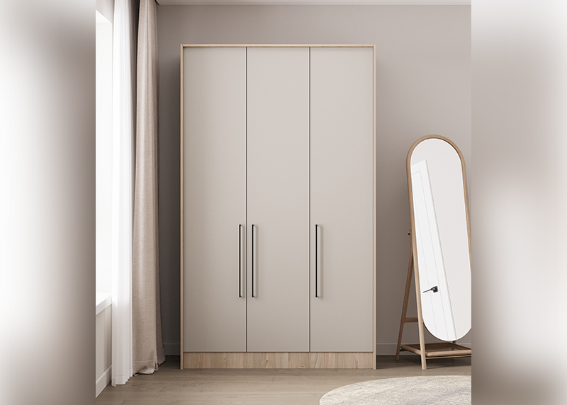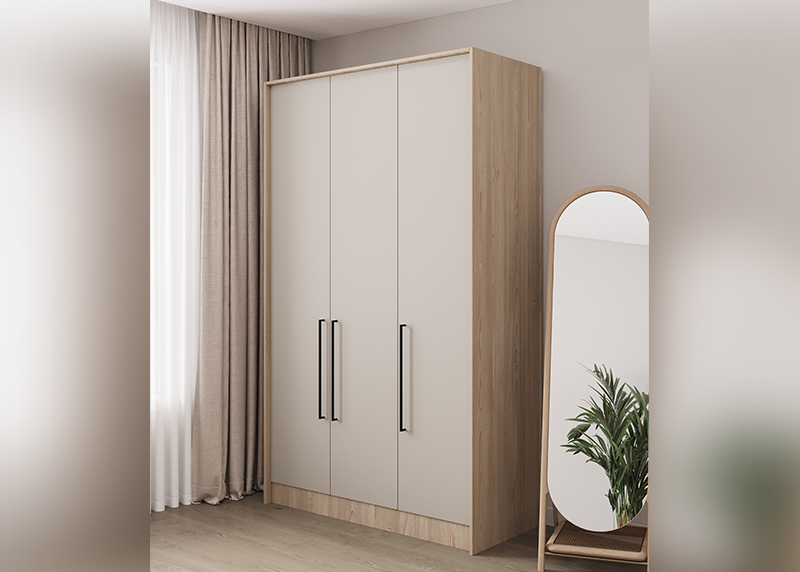 Компактный шкаф с тремя распашными дверцами — отличное решение для спальни, прихожей или детской. Простая, но продуманная конструкция обеспечивает удобный доступ к вещам. Благодаря нейтральному дизайну он гармонично дополнит любую обстановку, не требуя перестройки интерьера.