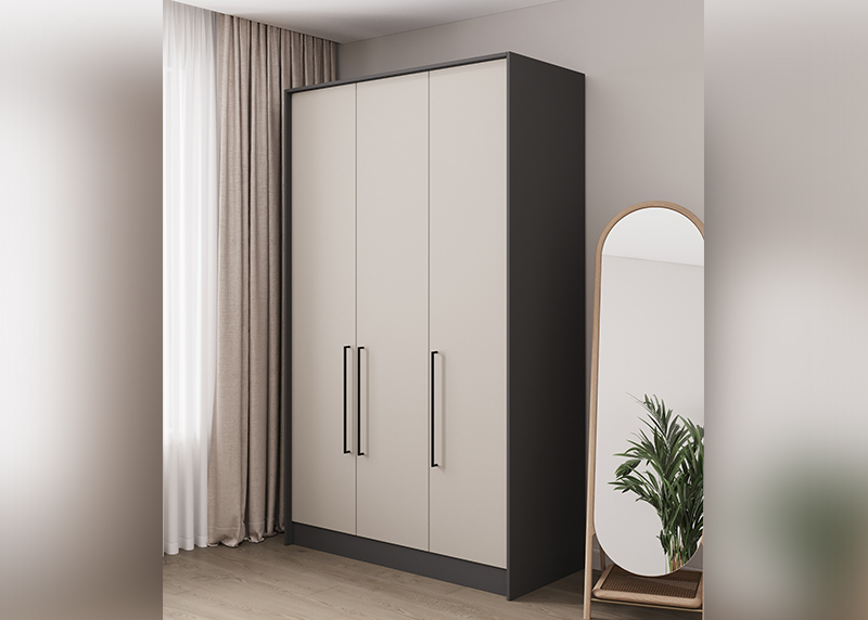 Компактный шкаф с тремя распашными дверцами — отличное решение для спальни, прихожей или детской. Простая, но продуманная конструкция обеспечивает удобный доступ к вещам. Благодаря нейтральному дизайну он гармонично дополнит любую обстановку, не требуя перестройки интерьера.